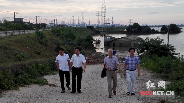 2017年7月6日,防洪守堤第五天,遵照湘潭市抗洪抢险指挥部、湘潭市教育局的统一部署,湘钢一中教育集团一行六人在校党委书记文继军的带领下,来到涟水河畔十万垄河堤段开展护堤值守工作。