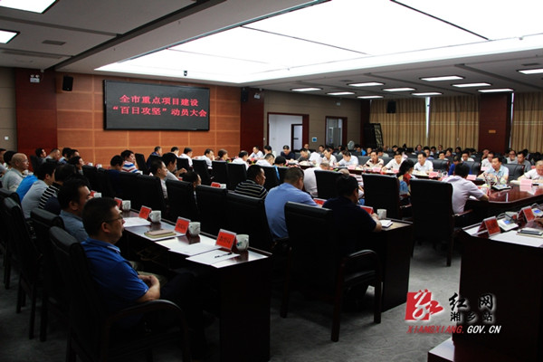 动员会上,市委书记彭瑞林指出,要抓住今天,只争朝夕,以时不我待的紧迫感攻坚项目建设。各级各部门要高度统一思想,明确责任,立足本职,凝心聚力抓改革、抓发展、抓稳定,强力推进全市重点项目建设;领导干部要沉到项目建设一线,上紧发条、开足马力、苦干实干,在这场百日会战中“扛旗领跑”,切实解决项目建设中的困难和难题。要抓住关键,统筹推进。切实把项目建设作为推动地方发展的“牛鼻子”来抓,牢固树立“项目建设是经济发展的主要平台、改变面貌的主要手段、锤炼干部的主要阵地”这个根本意识,以招商引资为抓手,积极培植好财源;要突出专业招商、部门招商、定点招商、领导招商,通过公平、公正的程序,把有实力、有技术的企业引进来,通过优质高效的政务服务确保项目快速落地、投产达效。要抓住机遇,紧跟时代。要深入研究当前省市各项发展政策,以高度的责任心和使命感落实好各项具体工作;要强力推进美丽乡村、小城镇建设,利用未来三年时间打造一批美丽乡村示范片、特色小城镇示范片、示范点;要加快房地产开发、城市棚户区改造进度,全面强化城市基础设施和公共服务设施建设,不断完善城市休闲、旅游、文化等功能。要抓住考核,运用成果。加强督查考核,建立完善的考核奖励机制,突出问题导向,以严格的规章和制度管理好项目建设实施细节,以强有力的监督问责,通过百日攻坚把经济总量做得更大、把发展质量提得更高、把民生福祉增得更多,努力推动湘乡发展再上新台阶。
