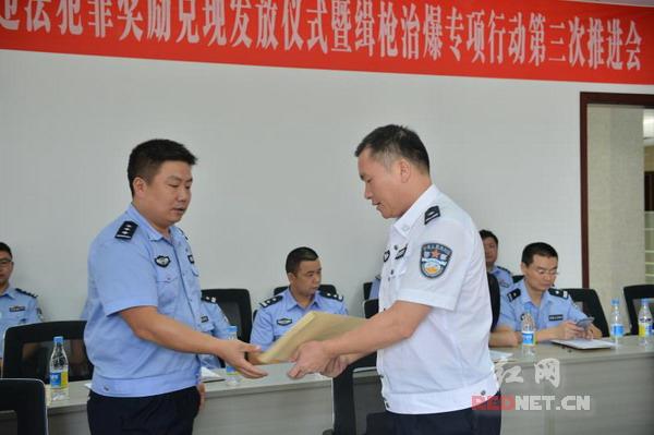 红网湘潭站7月27日讯(通讯员 谭小军 记者 楚湟)7月27日上午,湘潭市公安局举行群众举报涉枪涉爆违法犯罪奖励兑现发放仪式,共有21名群众领到共计5.15万元奖金。