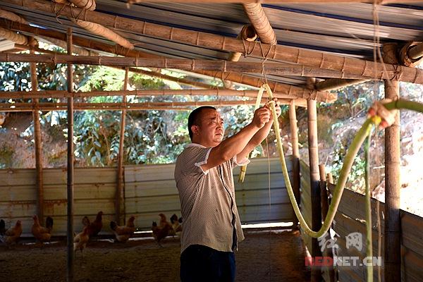 原梅龙村村主任黄泽早年在广东打工,积累了一定的资金后,回乡创办了一家竹制品企业,为村里盛产的楠竹找到了销路。2015年,驻村联点帮扶单位--湘潭市商务局为梅龙村派驻了第一支部书记刘舟,他经常组织村干部、贫困户学习各项扶贫惠农政策。与此同时,支、村两委积极争取扶贫项目资金,在改造完善水利、交通等基础设施的同时,努力寻找产业脱贫之路,曾先后多次派人到湘潭县雁芙养鸡专业合作社学习。这时,黄泽干劲更足了,想法也多了起来,他决定利用梅龙村得天独厚的山地资源发展土鸡养殖事业,以此带动建档立卡的贫困户增加收入。