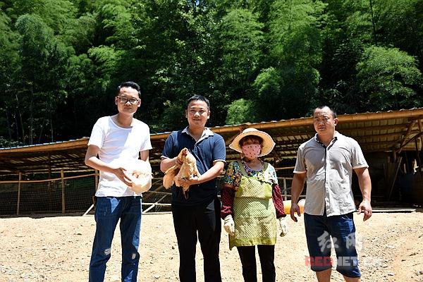 红网湘潭站7月27日讯(记者 焦炬)7月25日,湘潭市餐饮协会秘书长周孟获、湘潭市十佳优秀志愿者邓新虎一行驱车100多公里,来到湘乡市中沙镇梅龙村,了解梅龙土鸡的生长环境和销售情况。放养在青山绿水间的梅龙土鸡,因得天独厚的自然生长环境,品牌效应越发明显。但是,受地理位置、交通条件等因素的影响,梅龙土鸡的养殖者始终不能将品牌影响力完全转化为销量,只能眼睁睁看着鸡群错过黄金销售期,导致养殖成本越来越高。