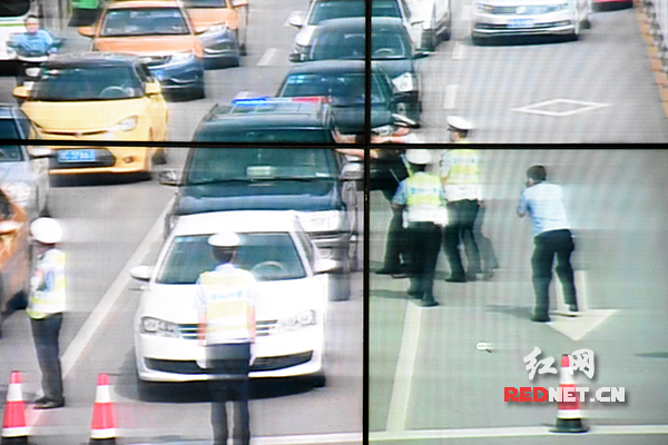 “我是指挥中心,发现一台违法车辆从一大桥往建设路口方向行驶过来……”在演练活动中,建设路口执勤民警、协警迅速分布在路口四周,并设置临时布控点。几分钟后,违法车辆驾驶员被成功控制,并将其带离现场。随后,民警又迅速归位,对该交通路口的秩序进行疏导与维护。
