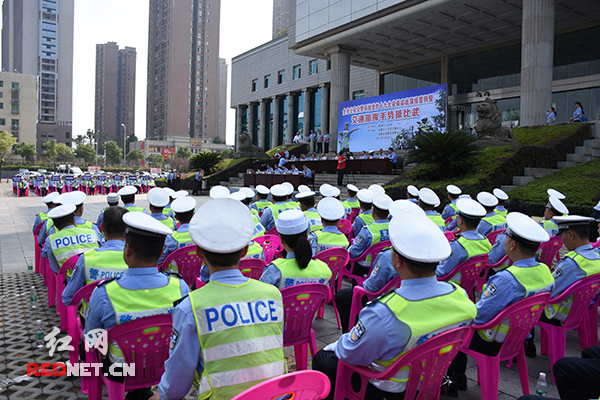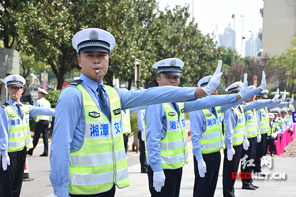 红网时刻9月30日讯(湘潭分站记者 楚湟 通讯员 方红辉)为切实做好党的十九大期间安保维稳工作,提高警务实战效能,9月30日上午,湘潭市公安交警系统党的十九大安保实战演练誓师暨交通指挥手势操比武在湘潭市公安局交警支队举行。湖南省公安厅交警总队政委杨能,湘潭市副市长、公安局局长罗伟等参加活动。