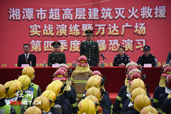 红网时刻10月13日讯(湘潭分站记者 楚湟 通讯员 朱亚军)为提升湘潭市消防部队的灭火救援实战能力及社会应急联动水平,确保党的十九大消防安保期间安全稳定,10月13日上午,湘潭市在万达广场开展高层建筑灭火救援实战演练。特勤、高新、湘潭县、雨湖、岳塘5个消防中队,13台消防车参与演练。