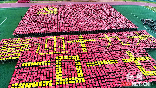红网时刻10月13日讯(通讯员 滕茜茜 魏玉婷 湘潭分站记者 凌雨晴 )10月13日上午,湖南科技大学新生军训检阅仪式暨总结表彰大会举行。八千六百多名新生队列整齐、姿态饱满。一个个紧握着的拳头,一张张透着坚毅的脸,一声声铿锵有力的口号,参训学子昂首挺胸,目光坚定。队列会操进行的同时,5800块红黄两色的彩板在“迷彩绿”中翻飞,拼出“国旗”、“军旗”、“喜迎十九大”、“国家富强”、“民族振兴”、“人民幸福”等字样图案,庆祝党的十九大胜利召开。