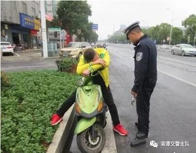17日15时05分许,易俗河镇大鹏雪松西路口,一男子趴在一辆无牌摩托车上一动不动,绿灯放行了一个周期也不见启动车辆。正在该路段执勤的民警注意到这一反常举动后,立即上前询问。还未等此人说话,执勤交警已闻到他身上散发出一股浓浓的酒味,人已经意识模糊。