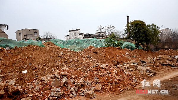 记者来到东坪镇树荣街发现,大部分建筑被夷为平地,但印有手印的青砖古宅还未被拆除。