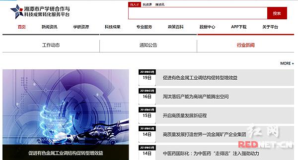 “湘潭市产学研合作与科技成果转化服务平台”网站截图。