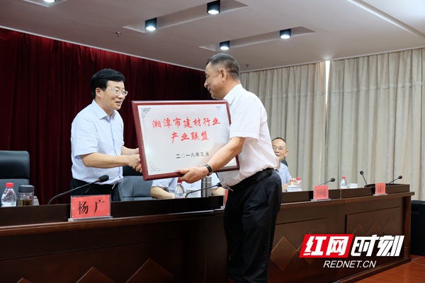 红网时刻湘潭5月18日讯(记者 曹维 通讯员 莫亚丽)为扎实推进湘潭产业项目建设年活动,5月18日上午,湘潭市装配式建筑产业链理事会(以下简称“理事会”)暨建材行业产业联盟(以下简称“联盟”)成立大会召开。湘潭市委常委、常务副市长杨广出席会议,并为“理事会”和“联盟”授牌。