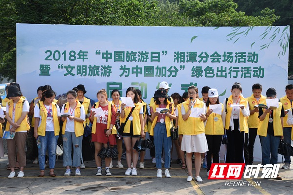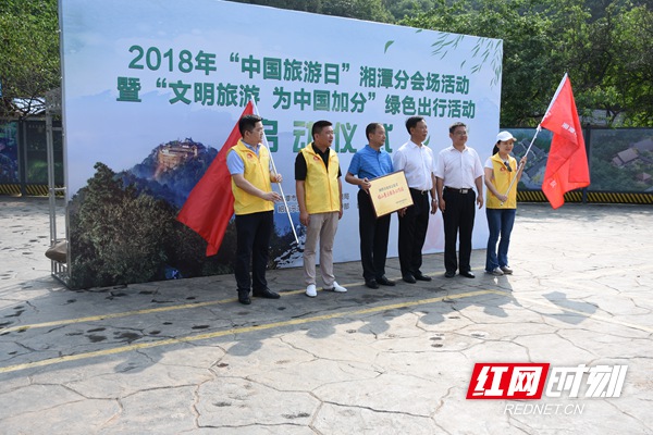 红网时刻湘潭5月19日讯(记者 曹维 通讯员 虞槟宇)为倡导绿色出游,5月19日上午,2018年“中国旅游日”湘潭分会场活动暨“文明旅游·为中国加分”绿色出行活动在昭山风景区启动。
