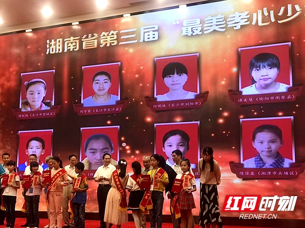 近日,在湖南省第三届“最美孝心少年”表彰大会上,来自湘潭市岳塘区湘机小学的陈佳鑫和韶山市城前学校的杨雨晴荣获全省“最美孝心少年”称号。湘潭市关工委荣获湖南省第三届“最美孝心少年”评选活动优秀组织奖。