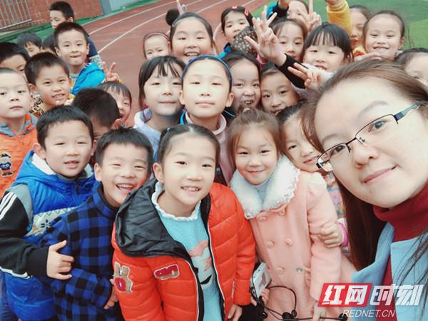 章艳和她的学生开心地在一起。