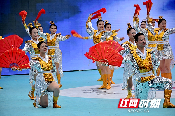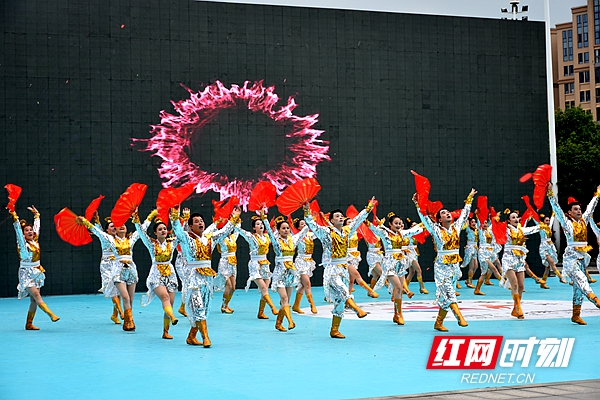 华菱湘钢工会广场舞队代表湘潭市带来的节目《莲城精神》。(胡邦建 摄)