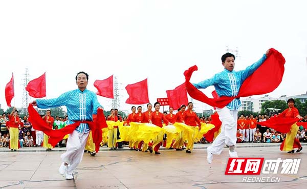 东方红广场上正在开展全民健身活动。图片来源:岳塘区委宣传部