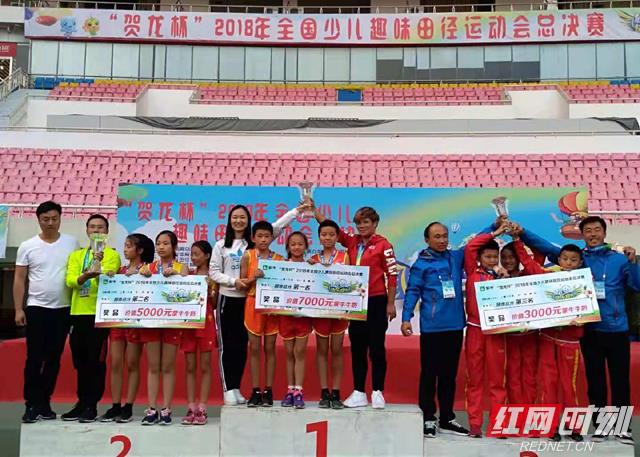 11月4日,为期两天的全国少儿趣味田径运动会比赛在湖南省长沙市贺龙体育场落下帷幕,来自全国14个省份、37所学校的54支队伍参加比赛,展示少儿趣味田径运动的无限魅力。湘潭市岳塘区湘机小学教育集团参赛队伍经过激烈的拼搏,获得了“贺龙杯”2018年全国少儿趣味田径运动会总决赛团体总分第一名。