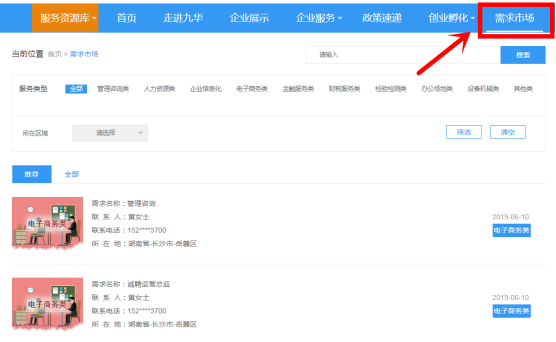 3.平台采用区域内资源共享模式,企业和机构等平台用户可以发布需求,并与需求方进行对接,帮助企业打通上下游,实现区域内抱团发展。
