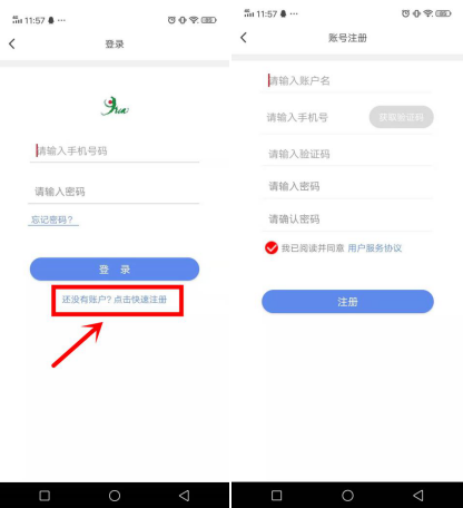 2.用户注册用户首次使用此软件时可用通过以下步骤进行注册:点击进入系统首页→我的→点击上方有登录注册的地方→进入登录界面,登录页面有注册入口