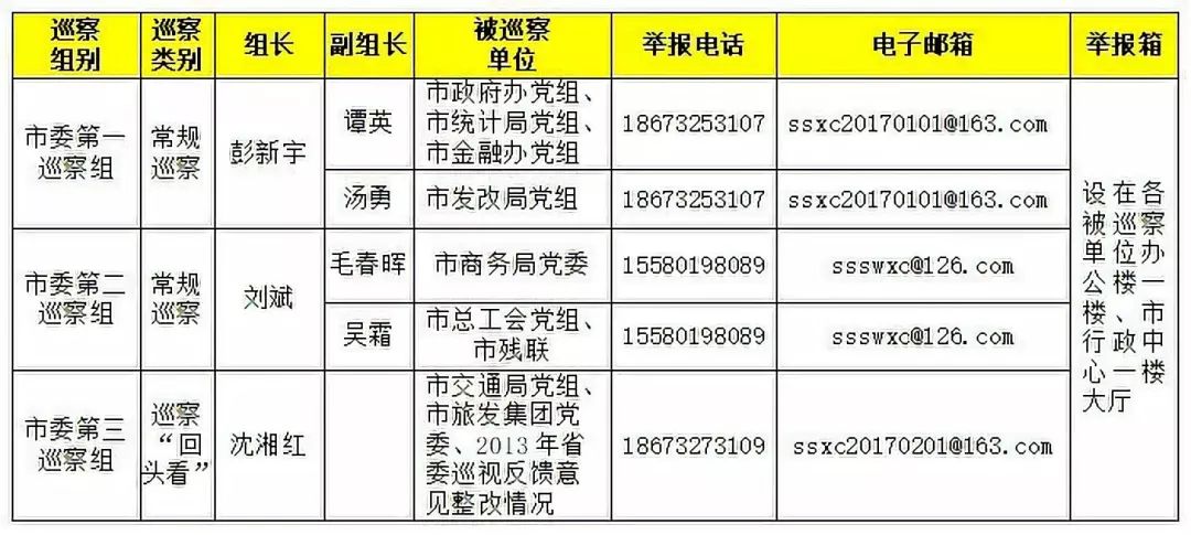 举报方式:为方便广大干部群众反映情况和问题,巡察期间,巡察组设立了专门接访地点,开通了举报电话、电子邮箱等。