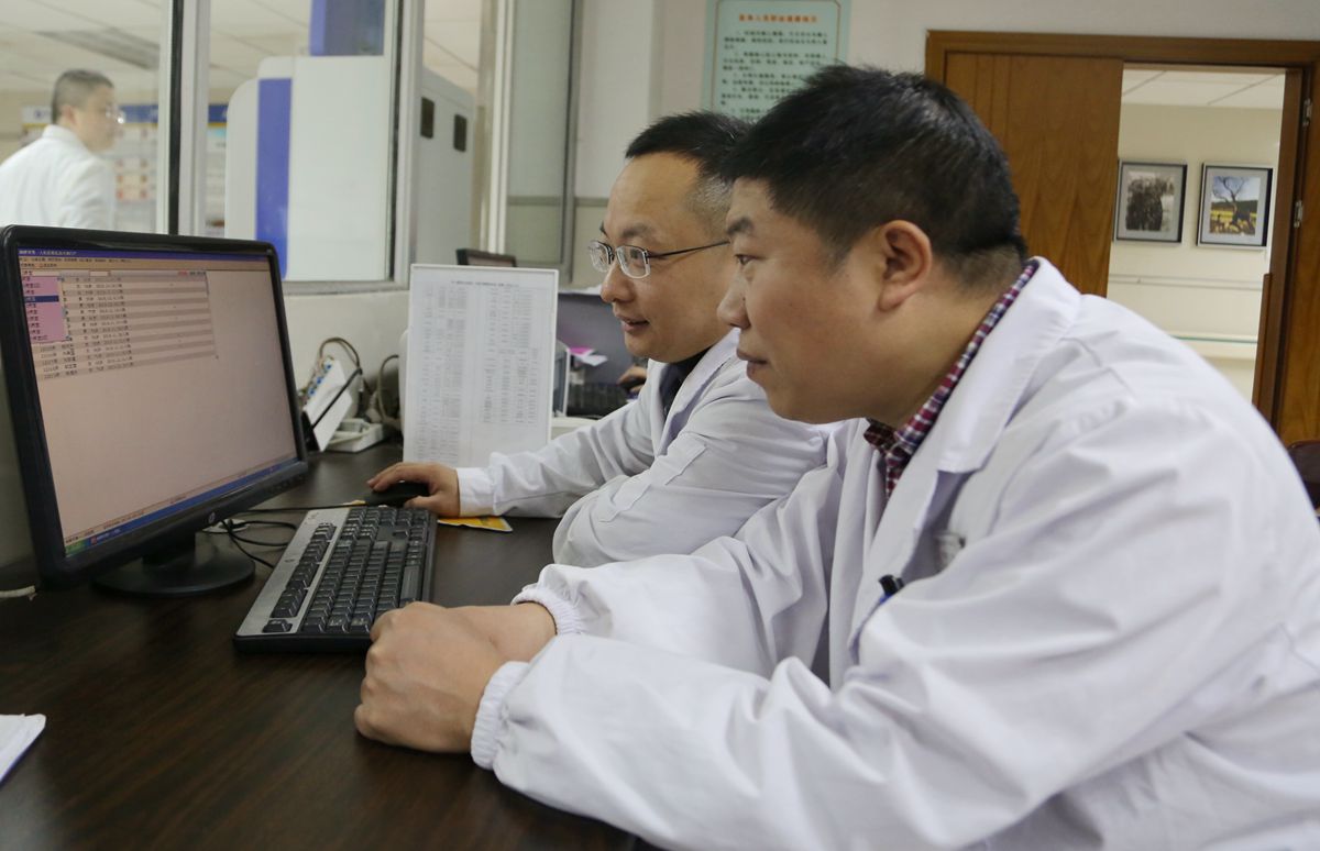 李志明、刘志贤商讨“3D打印穿刺定位导板”制作。