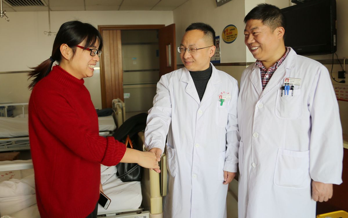 病人女儿握着手术医师李志明的手说出心中的感激。