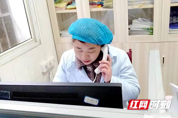 姜畲镇中心卫生院医务人员电话追踪,观察武汉返潭人员身体情况。
