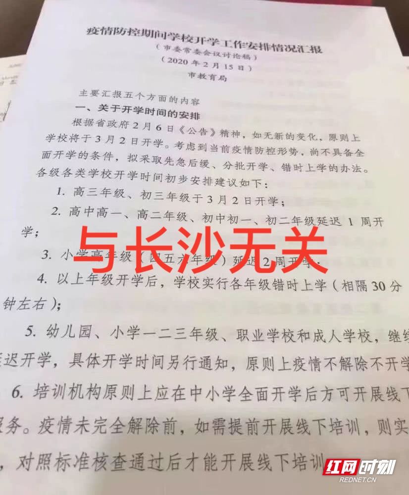 对于上述内容,记者向长沙市教育局了解到,该“情况汇报”与长沙市并无关系,具体开学时间还有待公布,请家长切勿听信谣言,以官方渠道公布的开学时间为准。