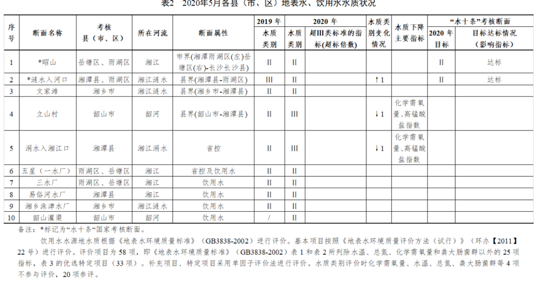 2020年5月,湘潭市2个“水十条”国家考核断面均达到2020年水质目标。