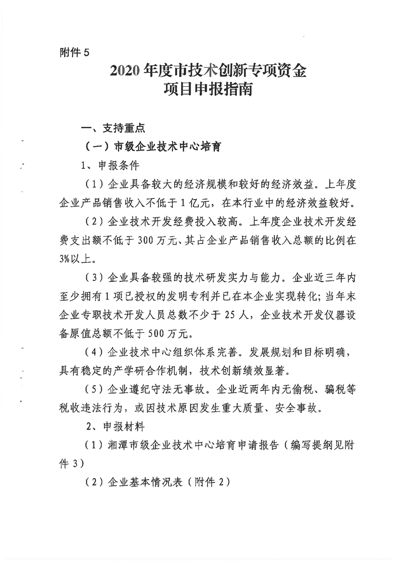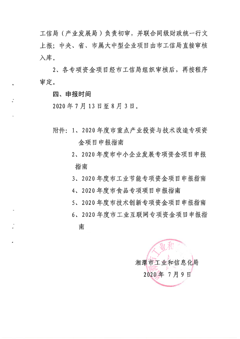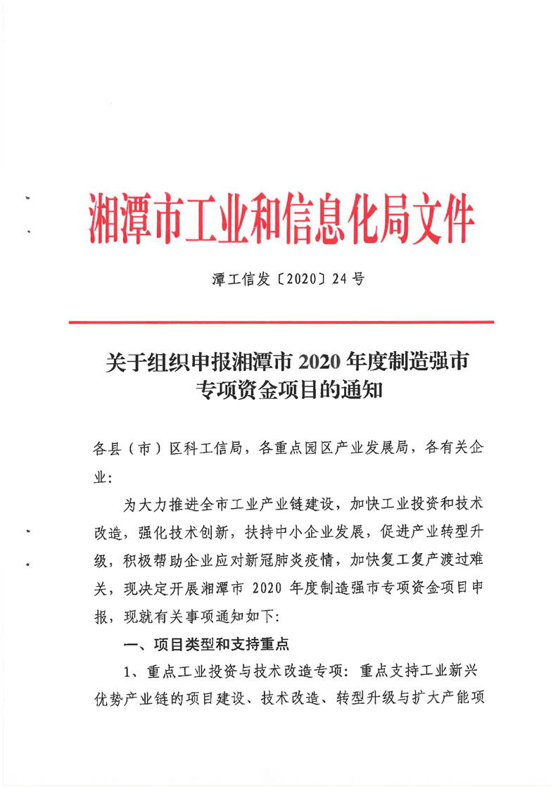 关于组织申报湘潭市2020年度制造强市专项资金项目的通知