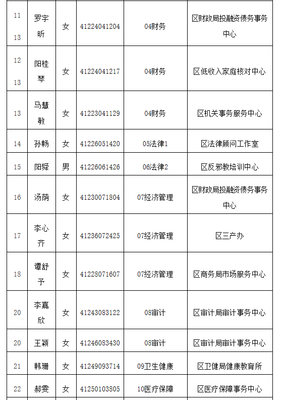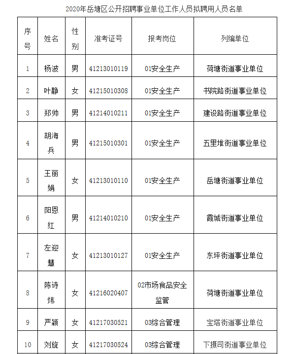 附件:2020年岳塘区公开招聘事业单位工作人员拟聘用人员名单