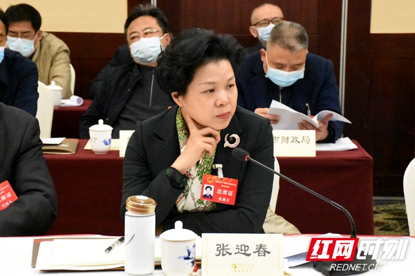 张迎春在湘乡市代表团参加讨论。摄影/谢文礼