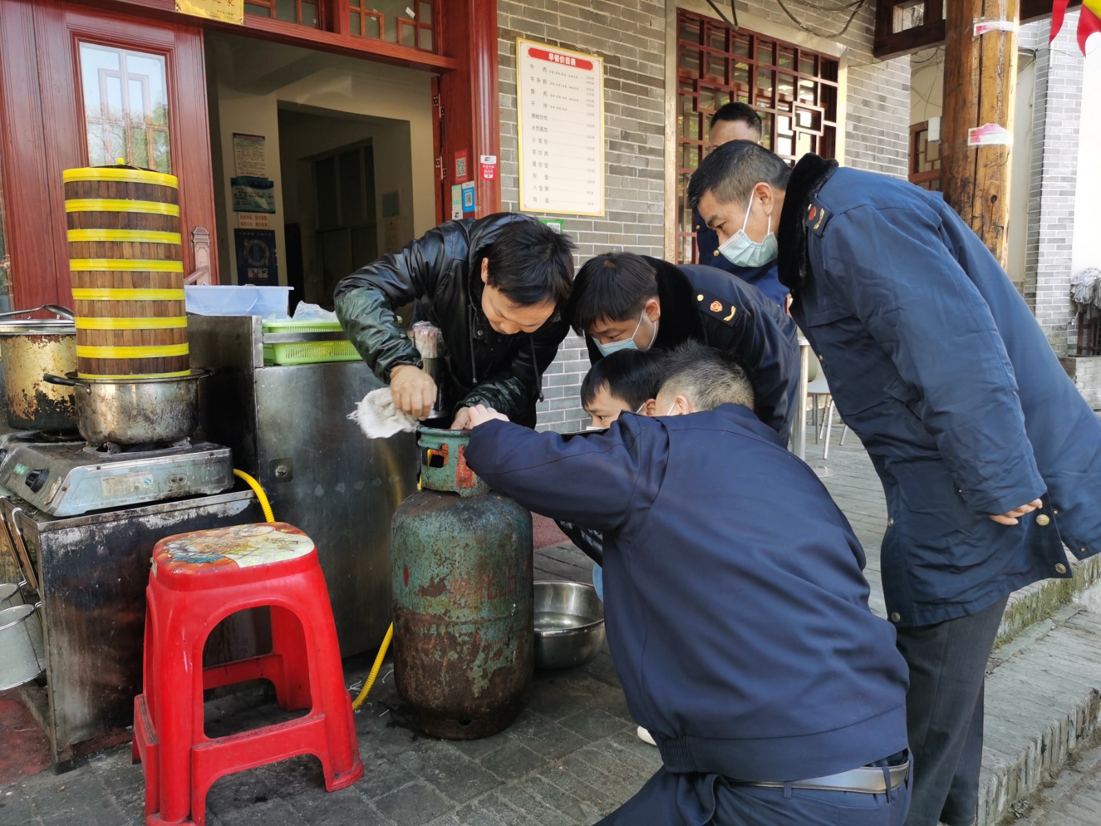 执法人员随机抽查了市区和景区10家餐馆和1家液化气经销点,重点检查液化气钢瓶是否破损漏气、是否定期进行了安全检查,相关标识是否清晰等。对检查中发现的不合格液化气钢瓶,执法人员当场予以收缴,并将其移送至专业机构处理。同时,执法人员还向店家深入宣传了安全用气知识。