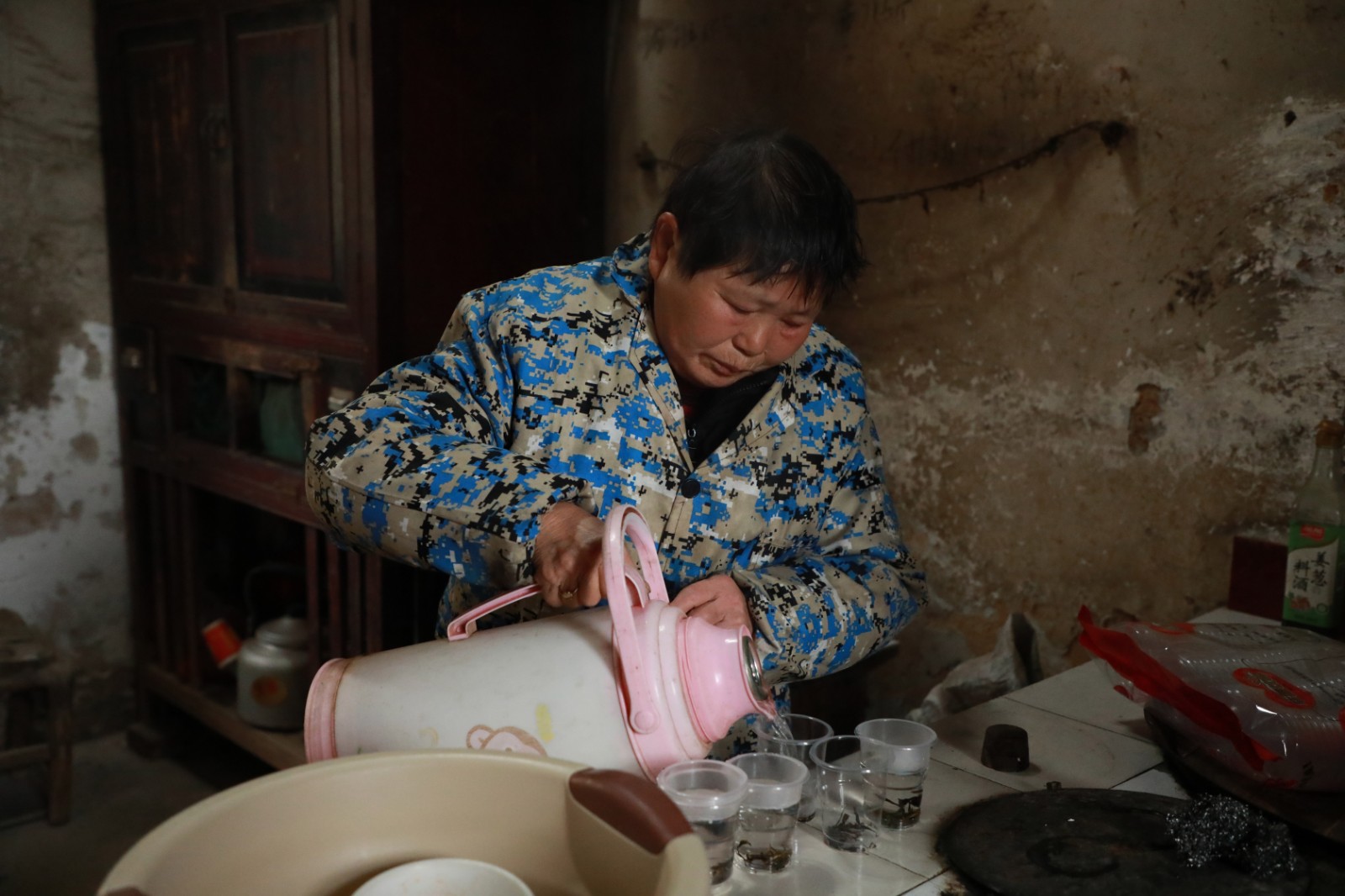 2007年,汤爱兰的儿子与蒋小聪结婚,小两口生下了一个可爱的女儿,一家人日子虽不富裕倒也其乐融融。可天有不测风云,2013年,蒋小聪的父亲和公公因病离世,接连失去亲人,蒋小聪精神变得脆弱,患上了精神分裂症。一次发病时,蒋小聪不慎摔伤,导致下半身瘫痪。这对于刚刚失去老伴的汤爱兰老人,无疑是雪上加霜。儿子在外打工维持生计,孙女尚且年幼,家中的事情一下子全压到了老人瘦弱的肩膀上。但日子总得往下过,坚强的汤爱兰没有倒下。她每天洗衣做饭、打扫卫生,照顾儿媳和孙女,把家中大小事务料理得井井有条。