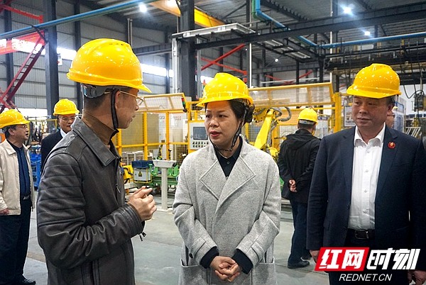 张迎春实地调研了链上企业湖南拓普汽车部件有限公司、湖南威孚汽车部件有限公司、湖南浩润汽车零部件有限公司。她鼓励企业坚定发展信心、抢抓发展机遇,紧盯市场需求、激发创新活力,不断将企业做大做强。她同时要求园区和相关部门加强与企业的沟通联系,以更加优质高效的服务及时为链上企业纾困解难,助推产业链高质量发展。