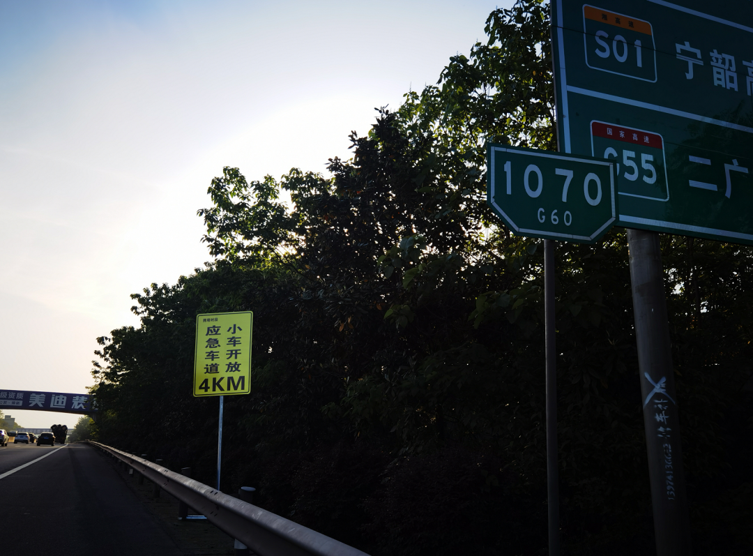▲G60沪昆高速湘潭段放开应急车道通行的指示标牌