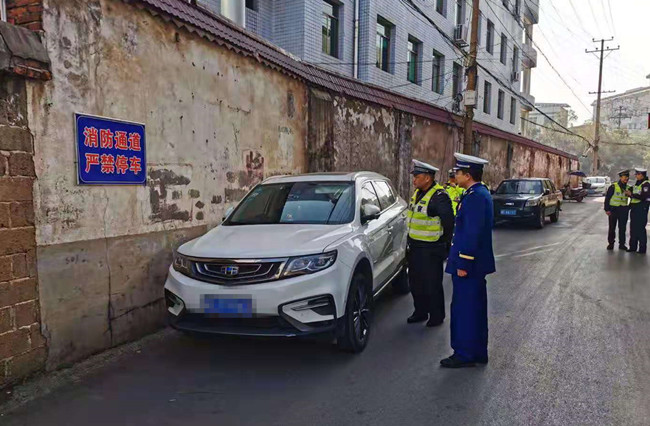 湘潭消防联合相关部门对消防通道违停进行整治。