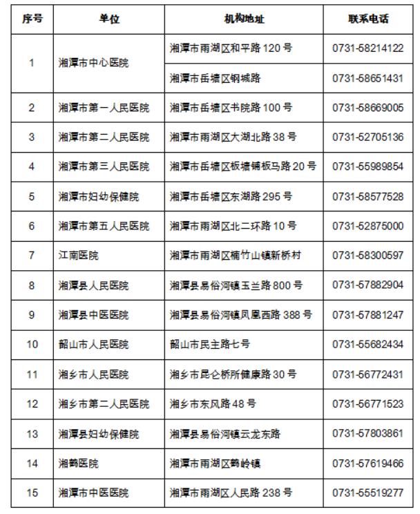 附表:湘潭市新冠肺炎病毒核酸检测定点机构名单