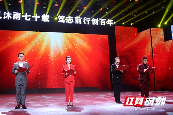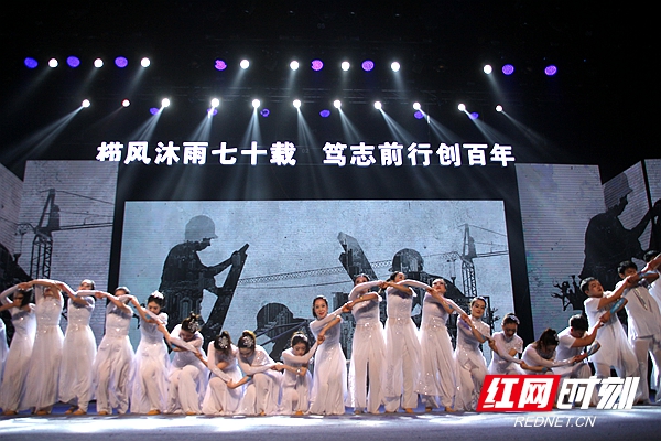 庆典演出在开场舞《盛世花开》中拉开帷幕。此次演出分“创业”“成长”“展望”三个篇章,共12个节目,中间还穿插了对公司老领导、劳动模范、优秀员工代表的采访,节目精彩纷呈、妙趣横生、亮点频现。