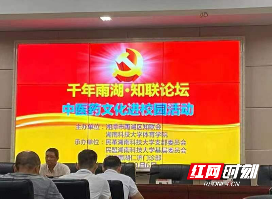近日,由雨湖区党外知识分子联谊会和湖南科技大学体育学院联合举办、雨湖区仁济门诊部承办的“千年雨湖·知联论坛——中医药文化进校园活动”在湖南科技大学体育学院开讲。活动旨在普及高校大学生中医药知识,感悟中医药文化的独特魅力,增强新时代高校青年学子的民族自信和文化自信。备战湖南省第十二届大学生运动会的教练员、部分运动员代表外及体育学院的部分师生聆听了讲座。