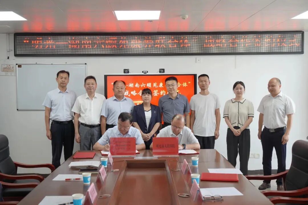 7月9日,湘潭市六医院·六颐苑与安徽省明光市人民医院签订“安徽明光-湖南六颐苑康养联合体”项目合作协议。
