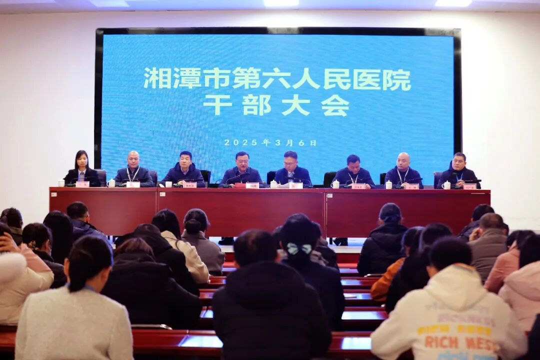 3月6日,湘潭市第六人民医院召开干部大会,宣布市委关于彭科担任市六医院院长的决定,党委书记向明凯主持会议并讲话。