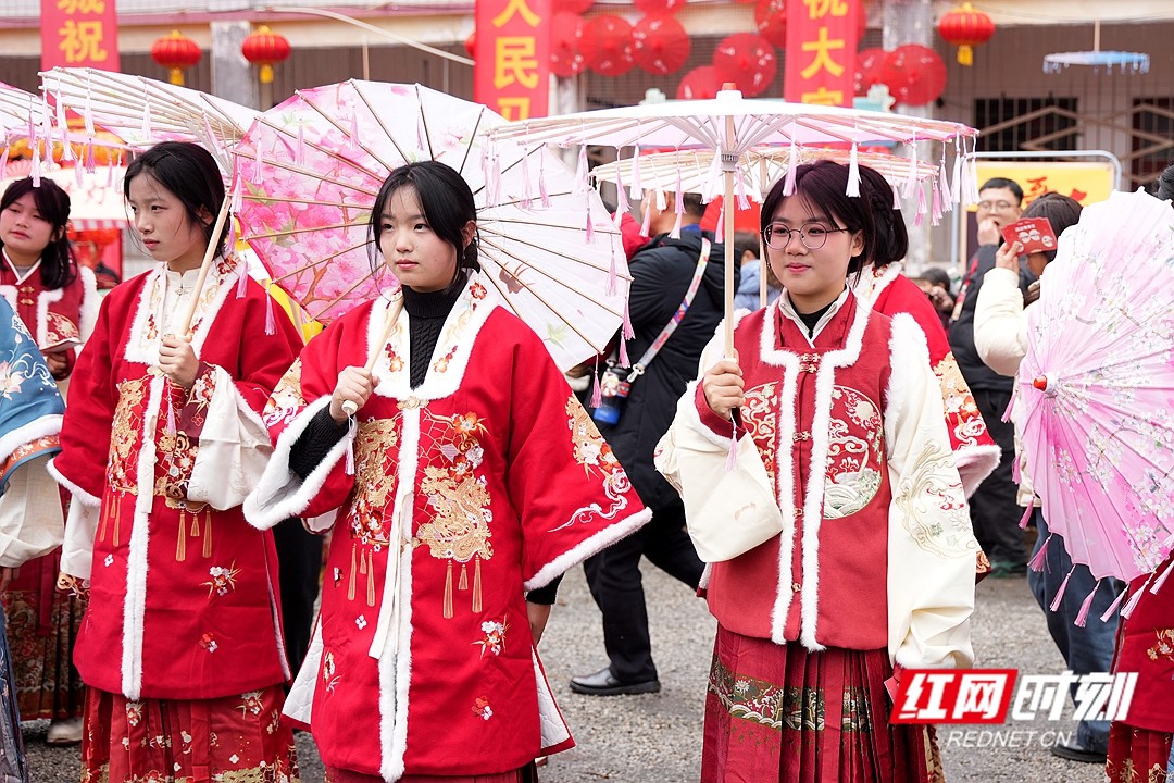 红网时刻新闻2月11日湘潭讯(记者 楚湟 凌雨晴 李乐怡)2月11日下午,湘潭县石鼓镇人头攒动、欢声笑语,第二届“石鼓村晚”暨油纸伞文化艺术展火热启幕。这场“家门口”的文化盛宴,将乡土年味与非遗匠心巧妙交织——舞台上,村民自编自演的节目乡情浓郁;展区内,油纸伞如花绽放,伞骨撑起传承记忆,伞面绘满振兴图景。镜头之下,既有父老乡亲的灿烂笑脸,亦有千年手艺的流光溢彩,共同定格成“我爱湘潭我的家”最生动的新春注脚。