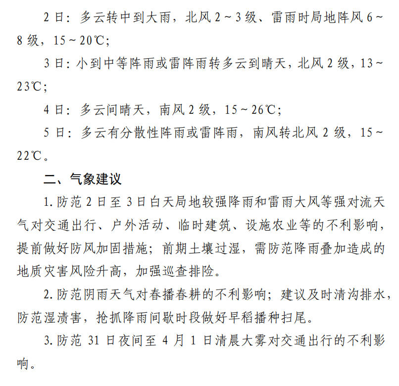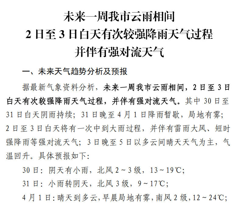 未来一周湘潭市云雨相间 4月2日至3日有较强降雨