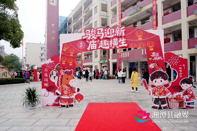 在湘潭县云龙小学,校园化作热闹的民俗市集,以“萌马寻福记 庙趣嗨翻天”为主题的开学庙会火热启幕。校园内热闹非凡,非遗美食区香气四溢,让孩子们驻足流连,舌尖上的美味唤醒校园活力;“新春雅韵”舞台区,学生们轮番登台献唱,婉转歌声传递着朝气;民俗游戏区里,投壶等经典项目排起长队,欢笑声此起彼伏;马年创意盲盒区更是人气爆棚,每份惊喜盲盒都藏着新学期的美好期许,孩子们穿梭在校园,沉浸式收获开学的第一份快乐。