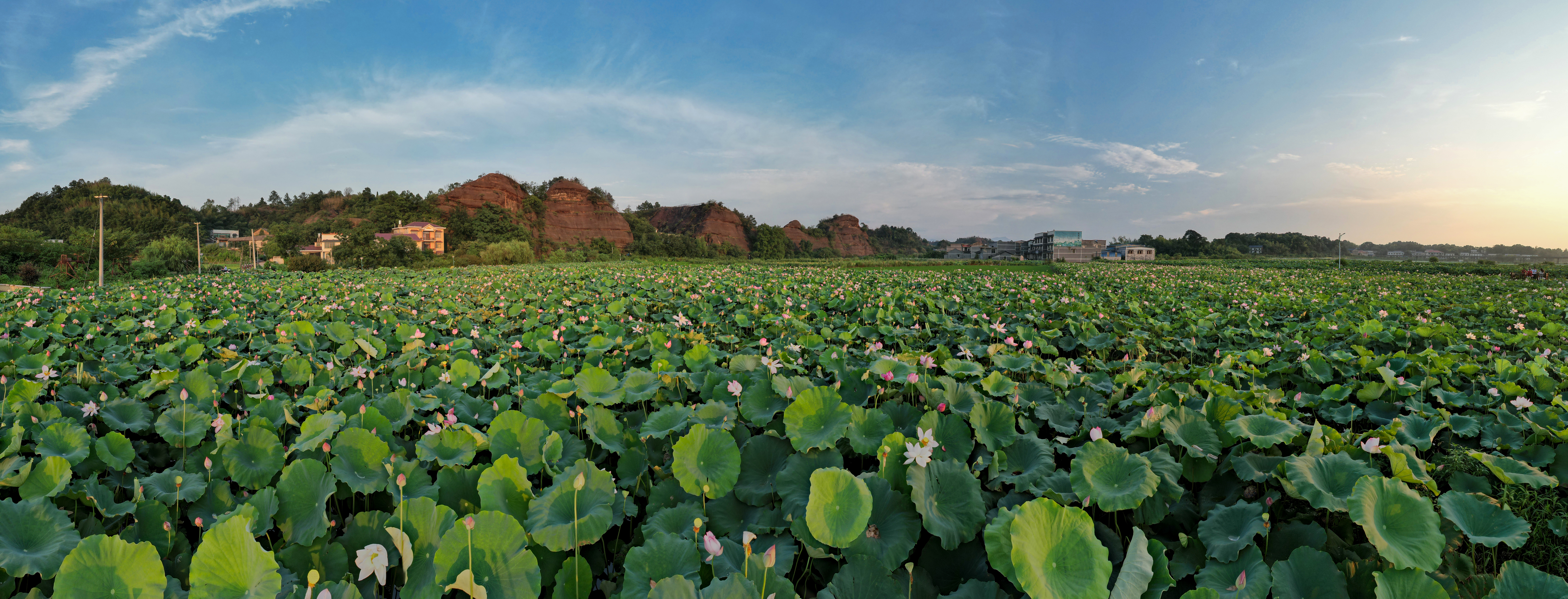 (夏日清晨的湘潭县花石镇万亩荷花基地。)