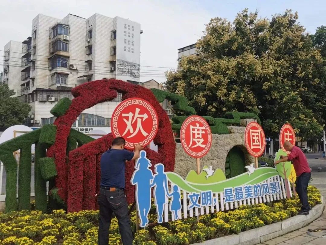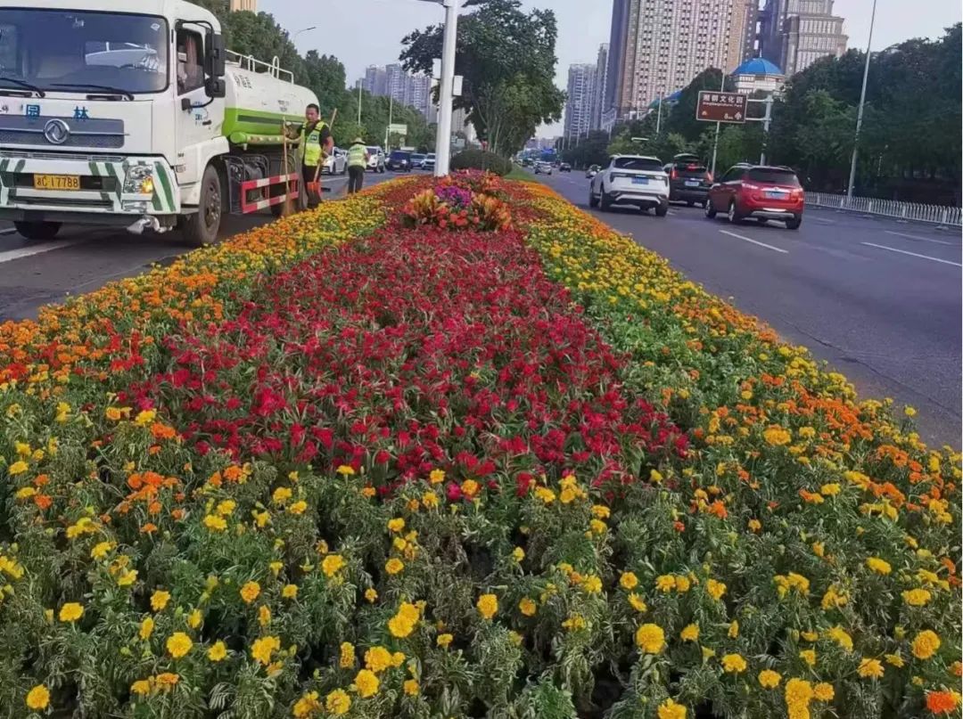 据统计,此次在公园、道路、广场和重要交通节点绿雕、桥体等处摆放鲜花约34.3万盆,撒播花籽约1.2万平方米,通过选用国庆菊、三角梅、龙船花等色彩艳丽的鲜花,运用花境、摆花组合、营造花海等形式扮靓城区,结合宣传牌、灯笼、国旗、彩旗,营造出热烈、喜庆、祥和的节日氛围,让市民不出远门就可以欣赏美景、共庆佳节。