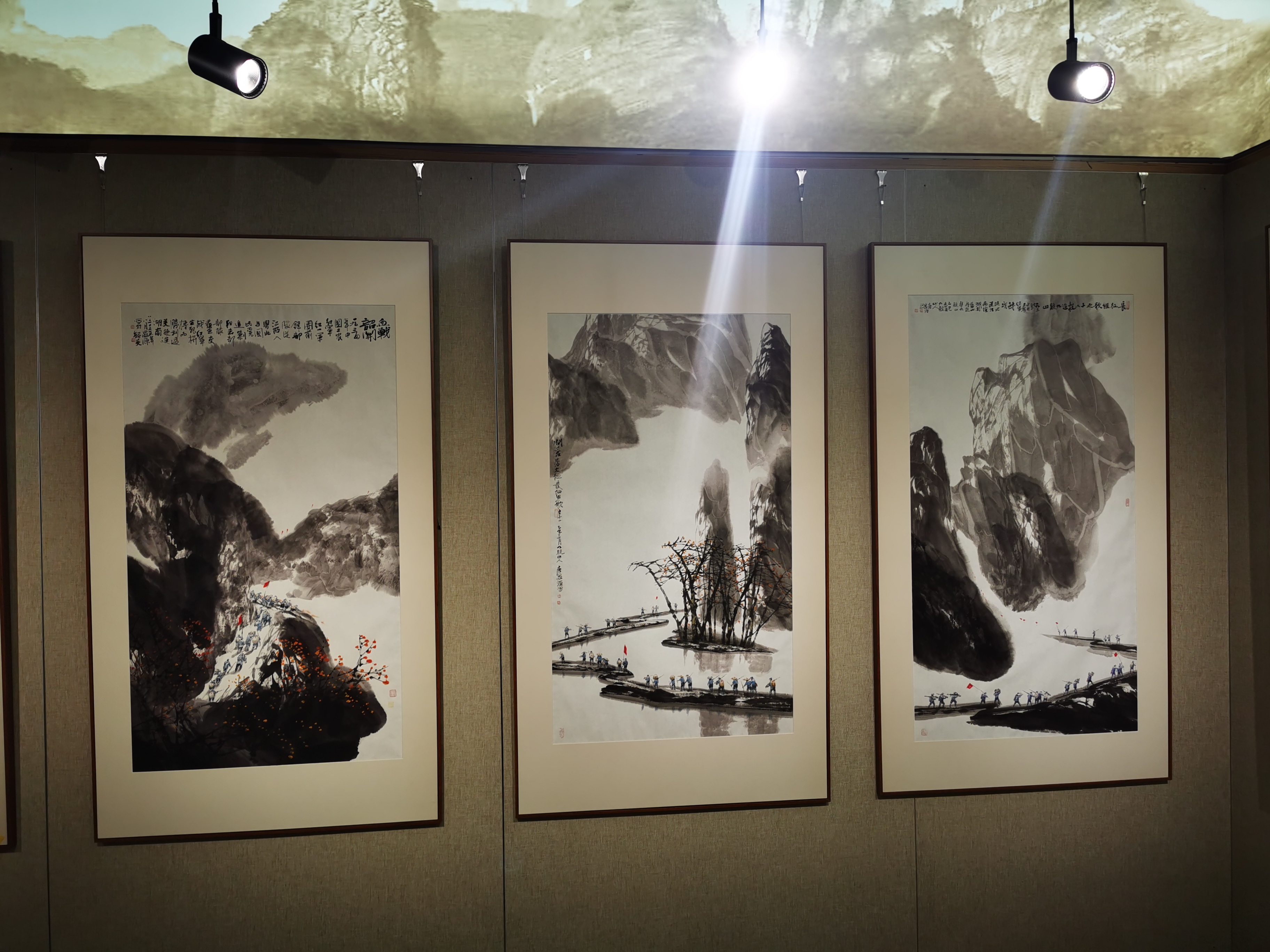 本次国画展,以“古建乡愁水墨/葡萄硕果累累”为主题,笔墨间既传递长征精神的磅礴与乡愁的温暖,也彰显艺术家隐居深山,草根为伍、潜心创作的奉献精神。特别是现场展出的《红军长征组画》最为引人瞩目,这组作品由26幅画组成,主要反映1934年红军长征途中突破粤北、湘南国民党封锁线的主题,也有著名的红军故事《半条被子》等。据介绍,此次展出的作品,为去年以来新创作的,作者被湘江战役中红军将士的一往无前、视死如归的战斗精神深深感动,于是创作了这组画。此外,来自韶关的红山银刀茶新品同步亮相,兼具传统匠心与现代创新,成为京韶两地文化交流的纽带。