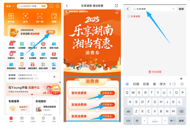 登录支付宝APP首页“乐享湖南·湘当有惠”专区或者搜索“乐享湖南”进入活动页面进行报名。