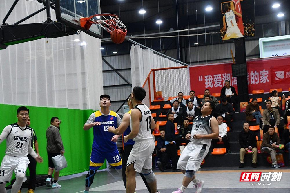 开幕式后,岳塘机关联队与高新机关联队展开了一场精彩的友谊赛。赛场上,双方球员斗志昂扬,运球、传球、投篮等动作一气呵成,比分交替上升,赢得了现场观众的阵阵喝彩。中场休息期间,现场开展了岳塘特色“苍蝇馆子”美食推介和定点投篮互动环节,让观众在欣赏比赛的同时,也能感受到岳塘的美食文化。此外,现场还准备了礼包,包含岳塘美食地图和区域内特色苍蝇馆的赠菜活动单,更有三家餐馆现场送菜品尝活动,将“运动”和“美食”完美结合。