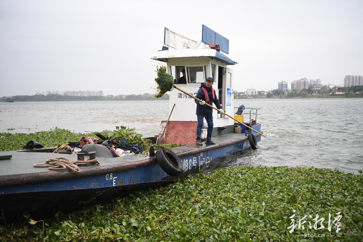 湖南永昌水上综合服务有限公司负责人介绍,为提升清理效率,目前已部署6艘主力打捞船在湘江上游段实施重点拦截,中、下游段分别安排4艘船只加强巡查与辅助清捞。统计显示,11月14日至16日期间,日均打捞水葫芦约200立方米,所有打捞物均于次日上午转运上岸并实施无害化处理。
