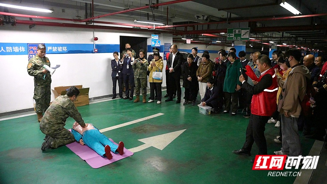 与此同时,东方名苑臻嘉园小区内开展了沉浸式防空疏散演练,并组织进行了心肺复苏、止血包扎等救护实操,结合国防知识普及,切实增强了物业人员与居民的应急防护意识和能力。